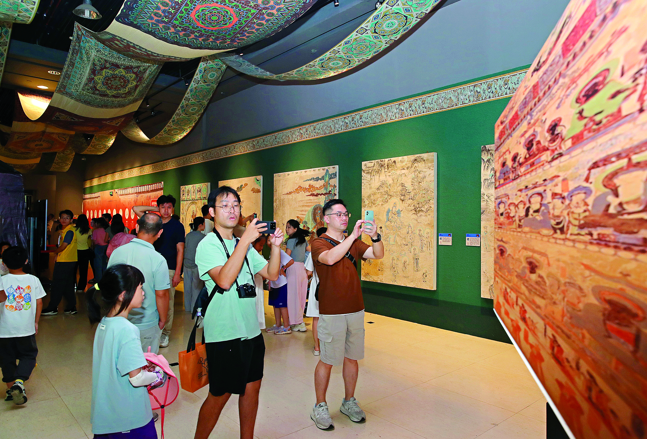 從暑假一直火到現(xiàn)在的“絲路華章 秘境敦煌”藝術(shù)公益巡展(惠州站)活動,是今年惠州場館文化活動的一大爆款。10月4日上午11時許,記者來到惠州市博物館看到,無論在壁畫展示區(qū),還是文創(chuàng)產(chǎn)品銷售區(qū),都是人頭攢動。