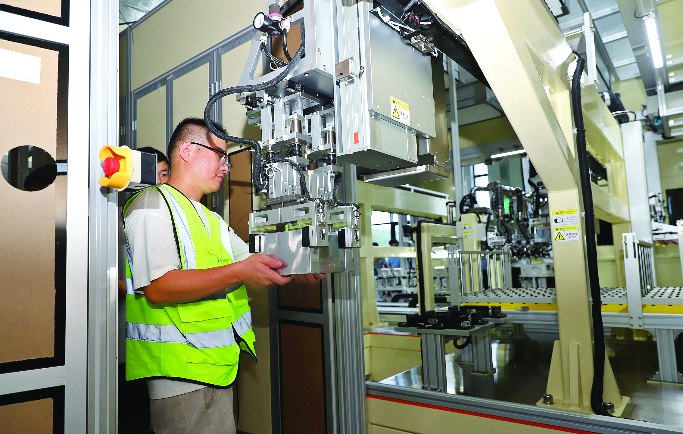 走進(jìn)金源機器人公司的生產(chǎn)車間,隨處可見技術(shù)人員忙碌的身影。在生產(chǎn)車間,工作人員指著正在組裝的大圓柱46系列設(shè)備介紹道:“研發(fā)這類裝備的最大挑戰(zhàn)在于行業(yè)空白,沒有任何可借鑒的成熟方案。我們依托20年經(jīng)驗,組建了跨領(lǐng)域攻關(guān)團(tuán)隊,通過跨界參考食品、醫(yī)療等行業(yè)的高速包裝理念,歷經(jīng)上百輪技術(shù)評審與方案迭代,最終突破了一系列核心技術(shù)。”