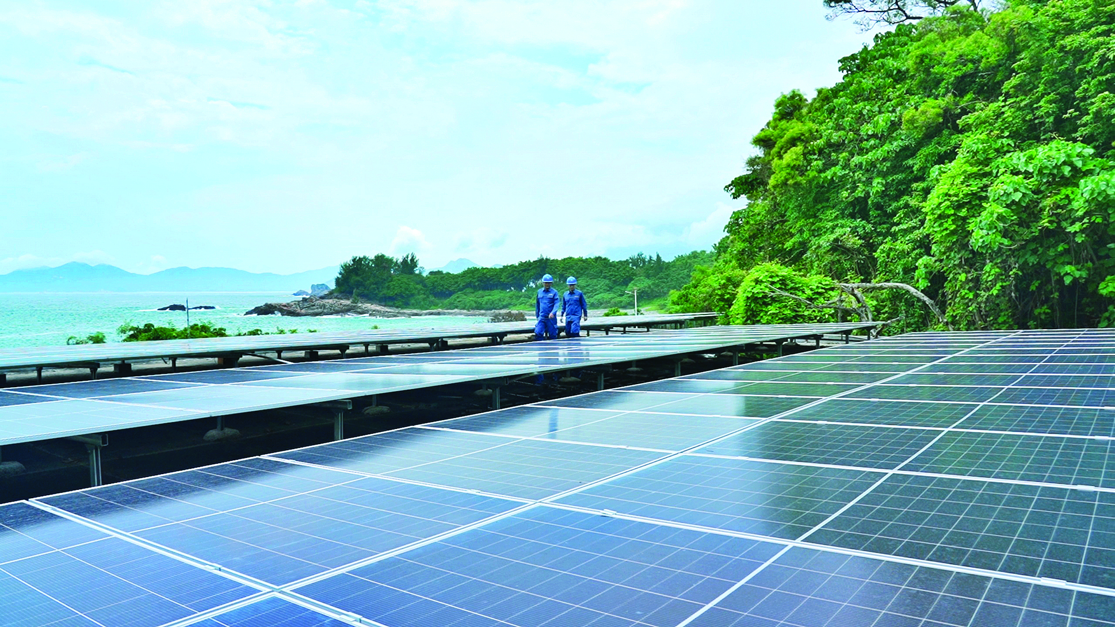 南方電網(wǎng)廣東惠州供電運(yùn)維工作人員正在檢查三門島微電網(wǎng)光伏設(shè)備。圖片由惠州供電提供