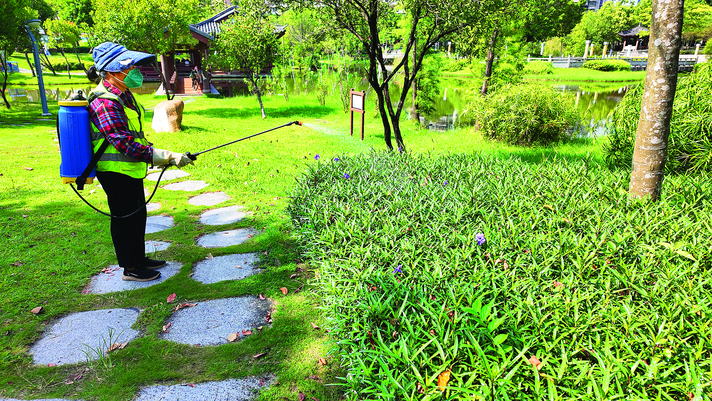 清晨,當?shù)谝豢|陽光尚未完全驅散葉片上的露珠,新湖公園的消殺隊員已經(jīng)背著噴霧機開始了一天的工作。噴霧機發(fā)出的嗡嗡聲與鳥鳴聲交織在一起,構成了一幅生動的晨間畫面。