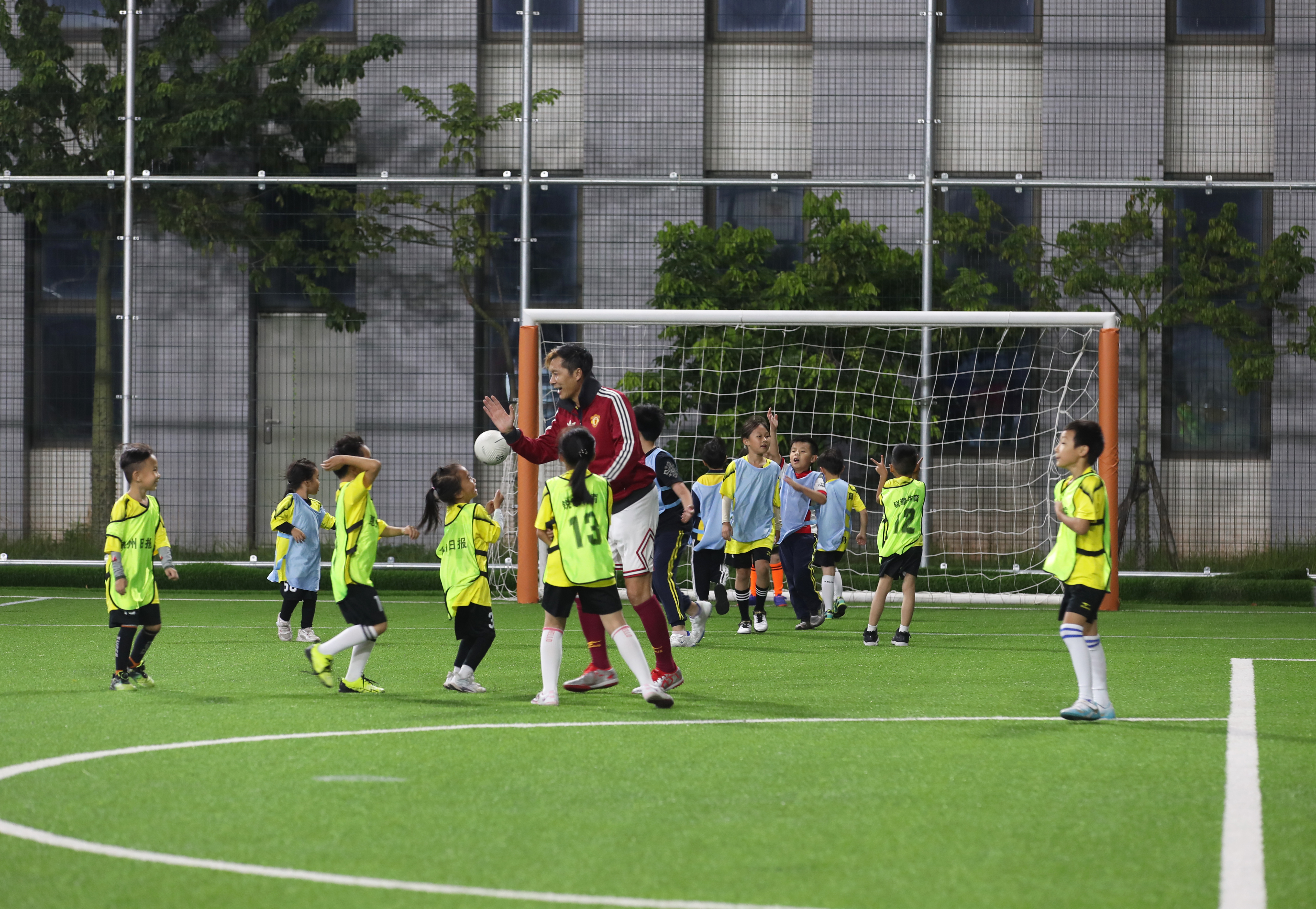 池明華現(xiàn)場指導(dǎo)小球員。惠州日報(bào)記者鐘暢新 攝