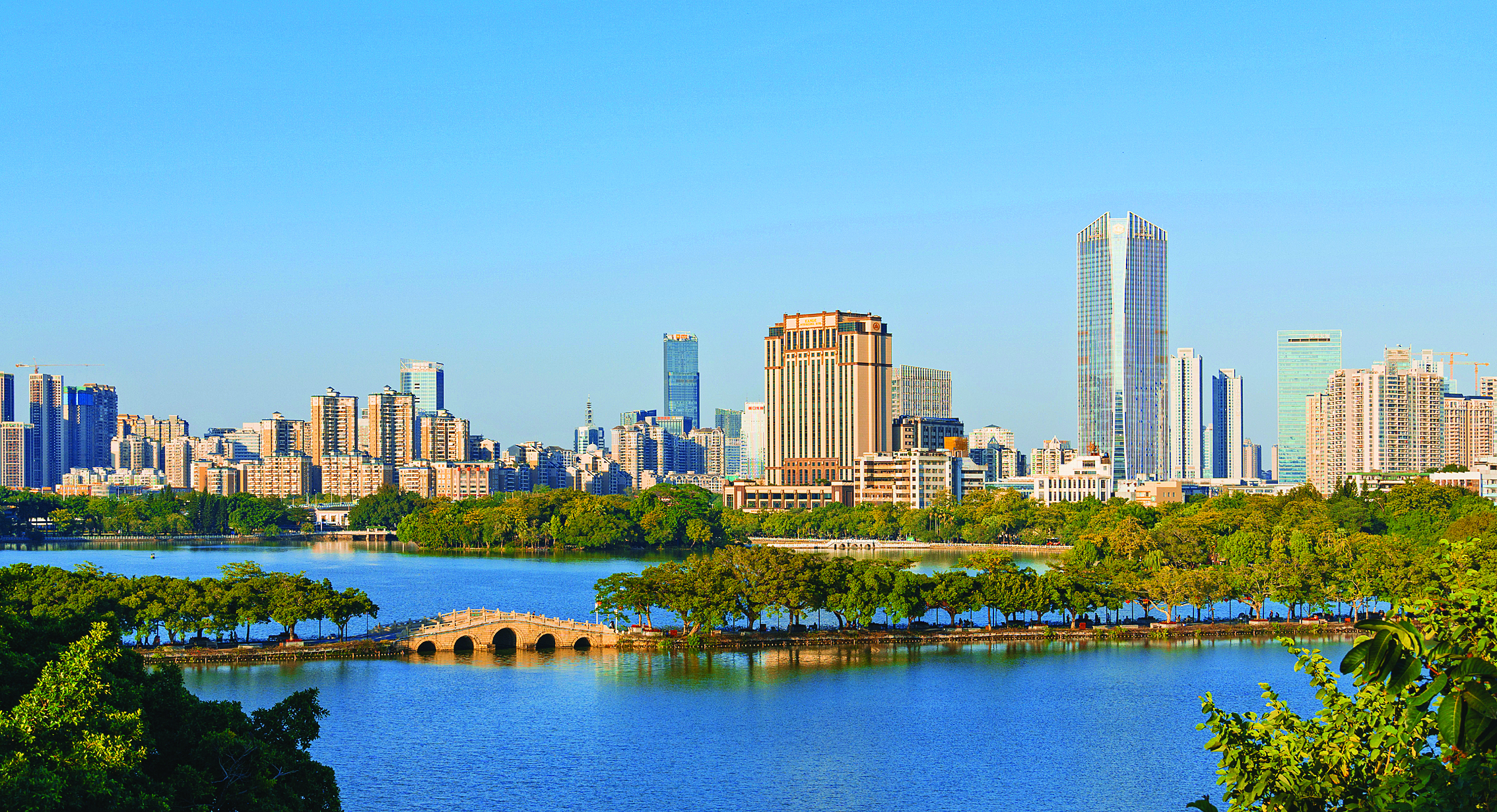 “半城山色半城湖”的美麗惠州。惠州東江圖片社供圖