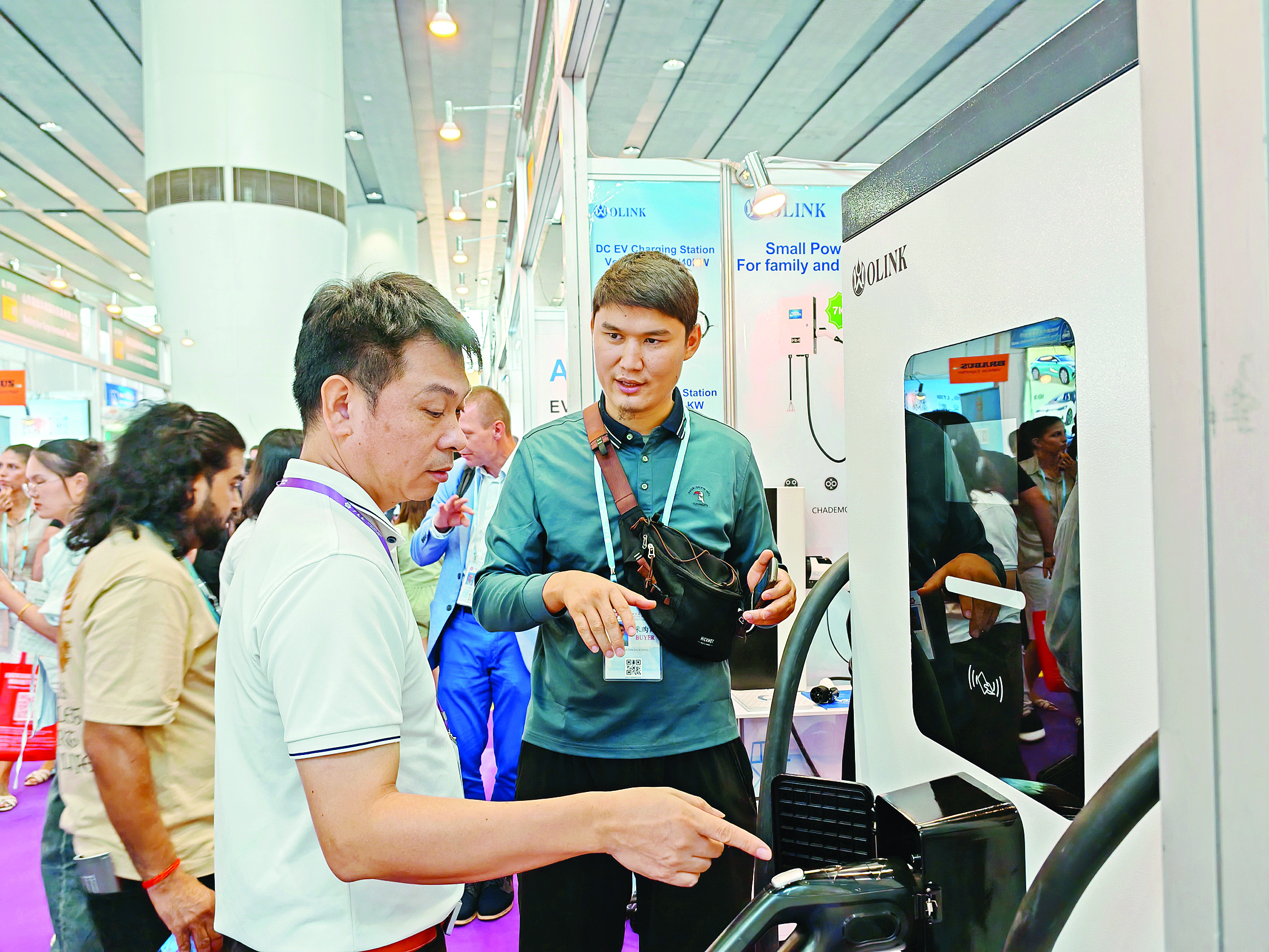 在惠州市萬(wàn)物互聯(lián)科技有限公司展位現(xiàn)場(chǎng),人氣高漲,客商絡(luò)繹不絕。“客戶對(duì)我們的首發(fā)產(chǎn)品特別好奇,問得非常仔細(xì)。”該公司總經(jīng)理胡裕捷告訴記者,此次展會(huì),他們的核心亮點(diǎn)是多款“全球首發(fā)”的充電解決方案。其中,直面“港車北上”充電痛點(diǎn)的兼容性產(chǎn)品成為流量擔(dān)當(dāng)。