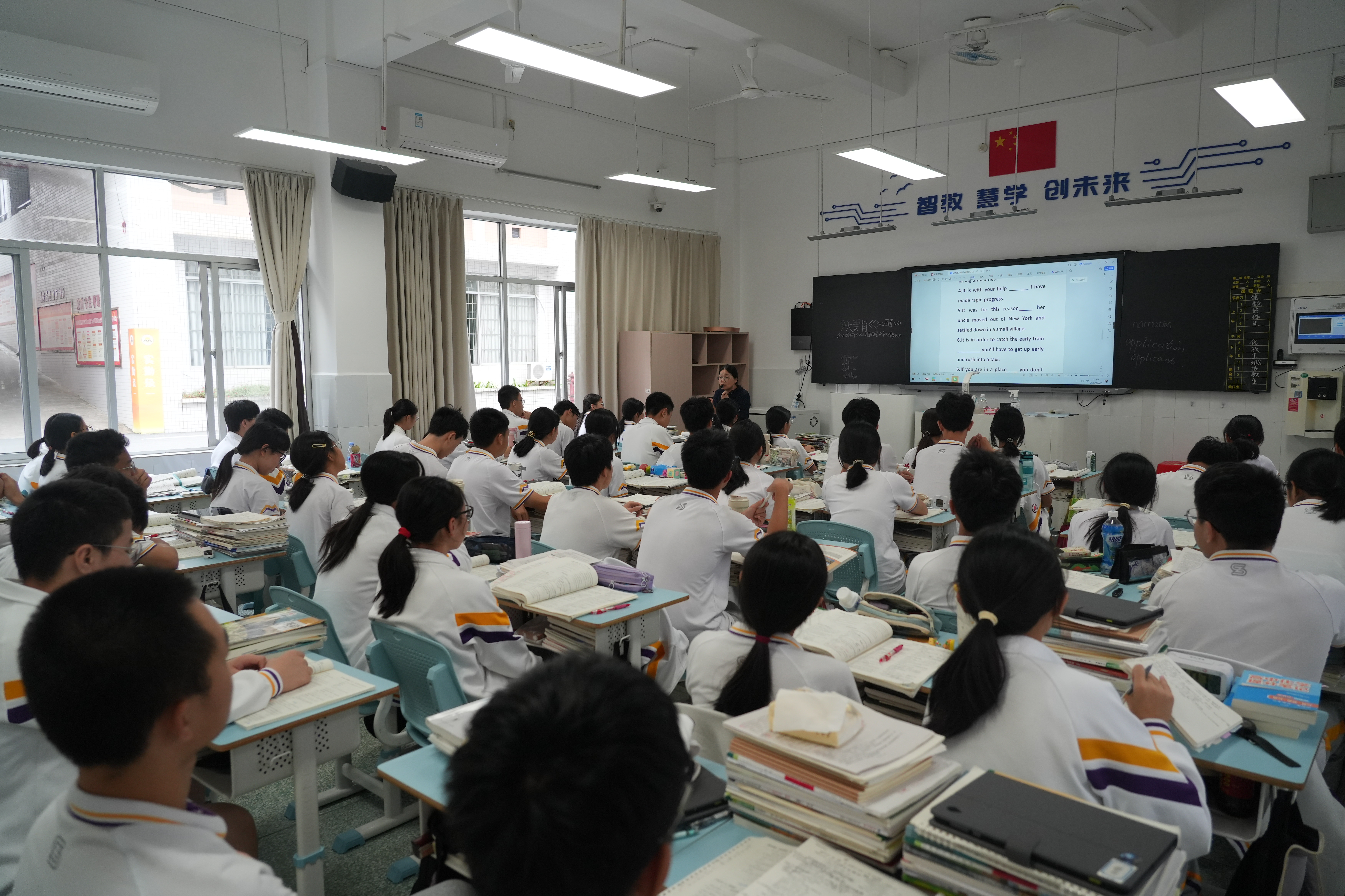 走進市實驗中學,校園里的宿舍樓外墻已翻新為淺黃色,走廊地磚換成防滑磨砂材質,新?lián)Q的柜子和床提升了學生幸福感;訊飛智能班已投入使用,學生人手一臺平板,可實現(xiàn)與黑板的交互式教學。
