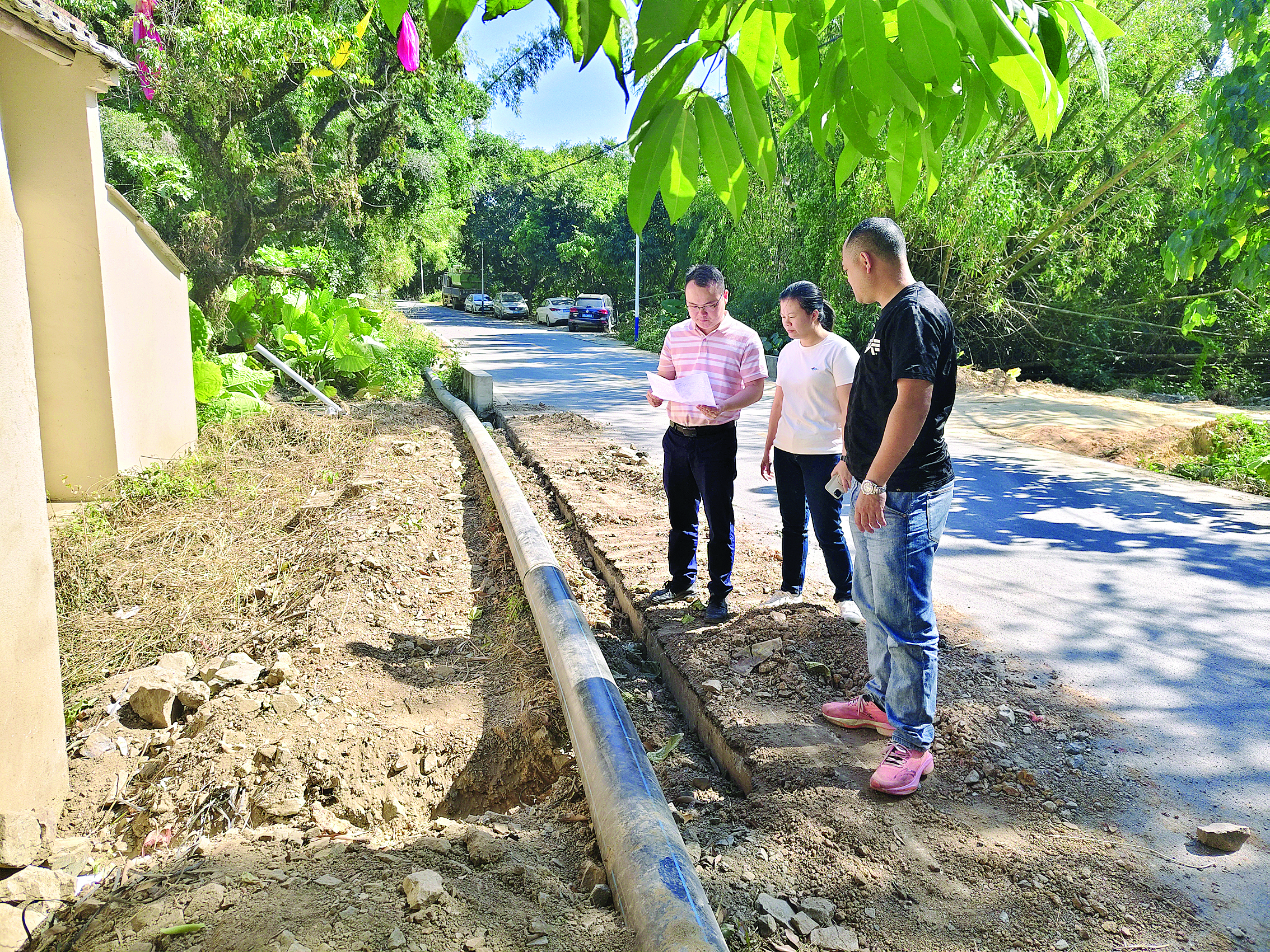 惠東縣紀(jì)檢監(jiān)察干部現(xiàn)場(chǎng)監(jiān)督應(yīng)急調(diào)水工程供水管道鋪設(shè)情況。
