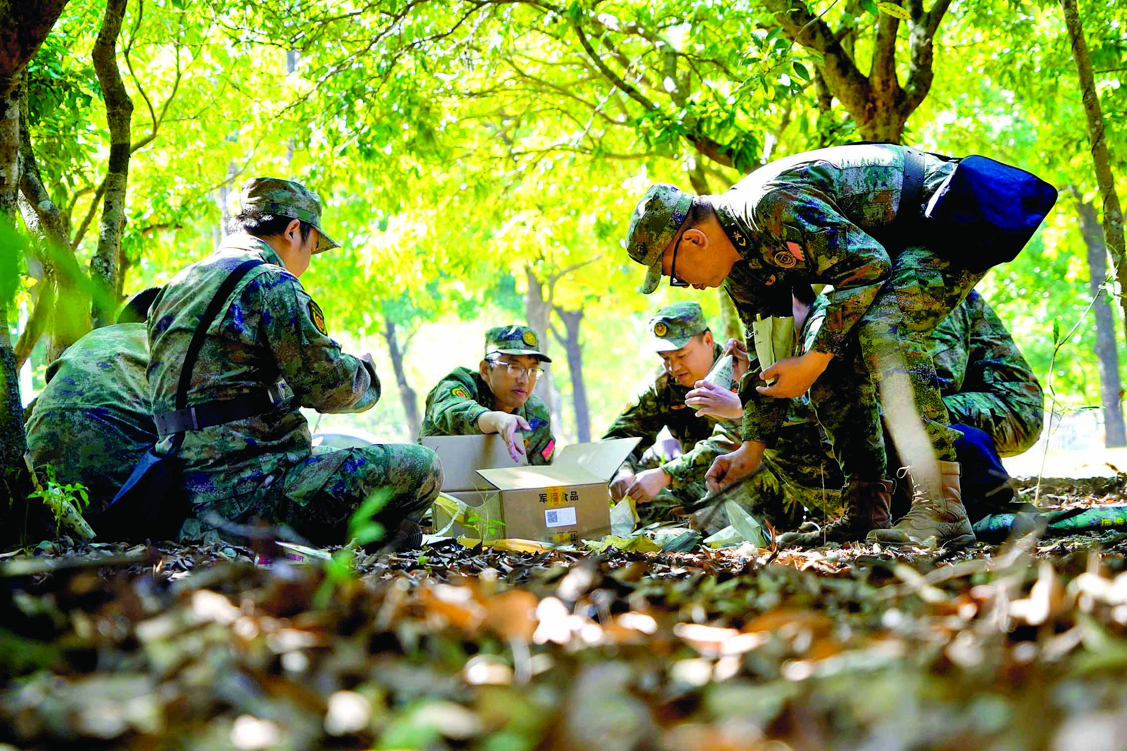 我市專武干部正在進(jìn)行野外生存訓(xùn)練。