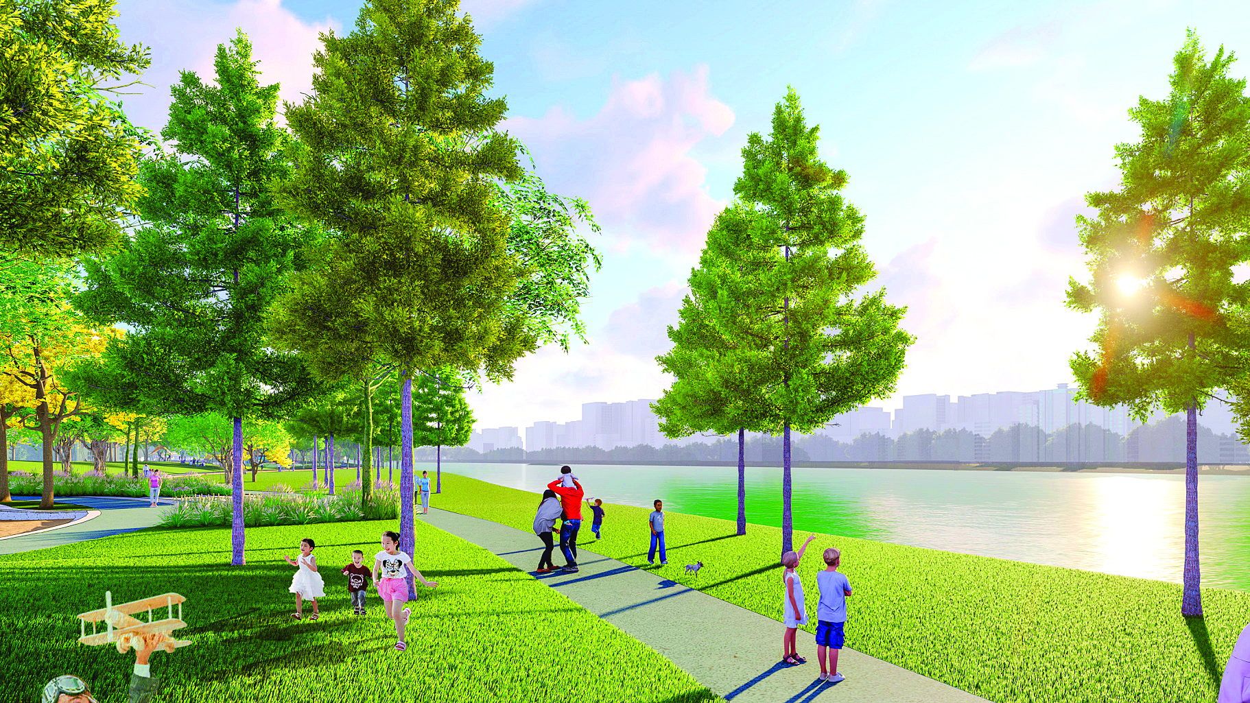 以開闊通透的大草坪為主要特色,打造開放式休閑公園