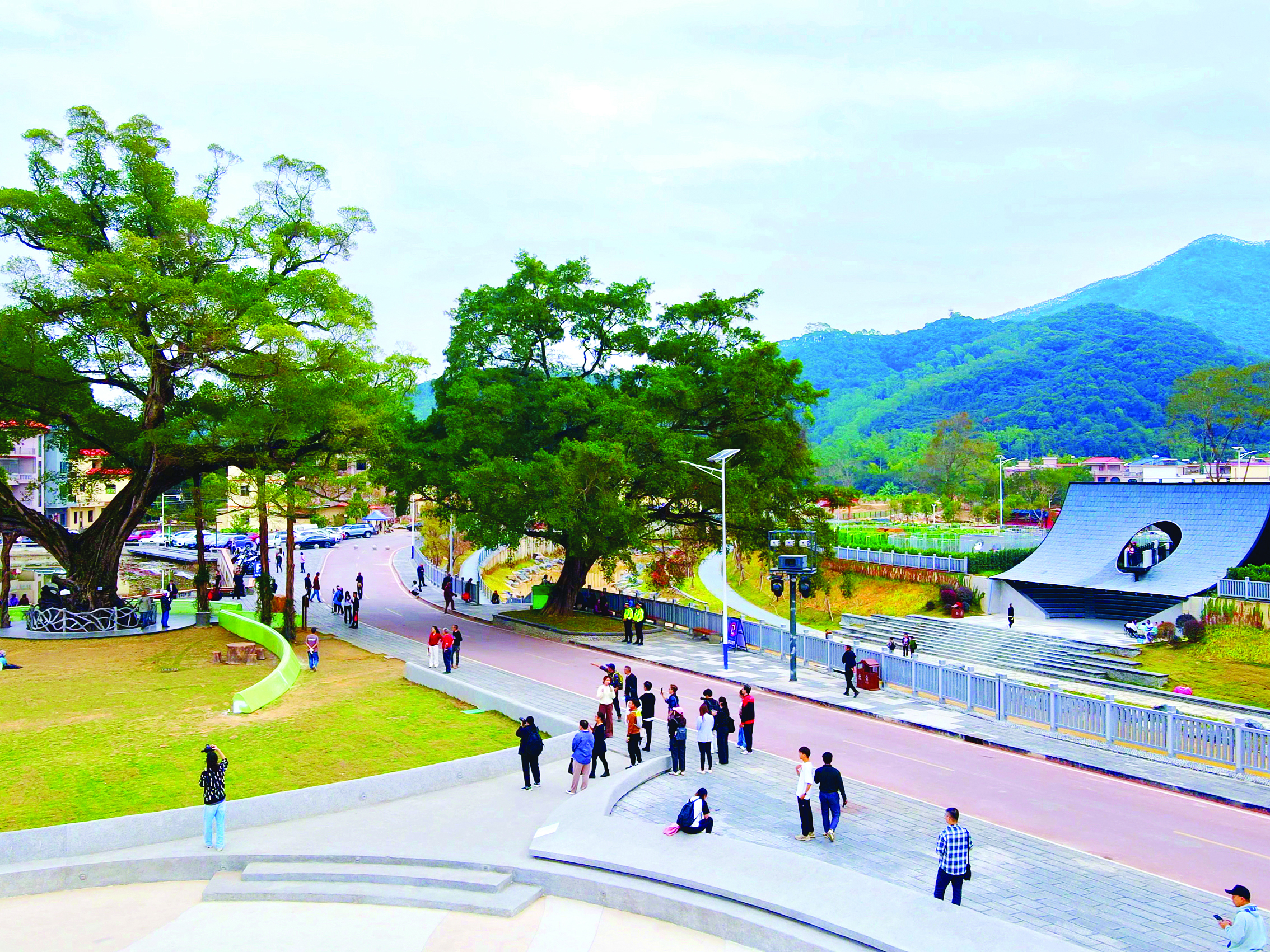 “作為龍門縣推動‘百千萬工程’的重要舉措,千年古榕驛站以‘修補與鏈接’為核心理念,將千年古榕與村落建筑有機串聯(lián),既為古樹提供更好的保護展示空間,也盤活了閑置資源。”麻榨鎮(zhèn)中心村黨總支書記、村委會主任張奇峰介紹,目前古榕文學(xué)村正著力推動“以文塑旅、以旅彰文”,讓游客從“看樹”升級為“深度體驗文化與生態(tài)融合”。