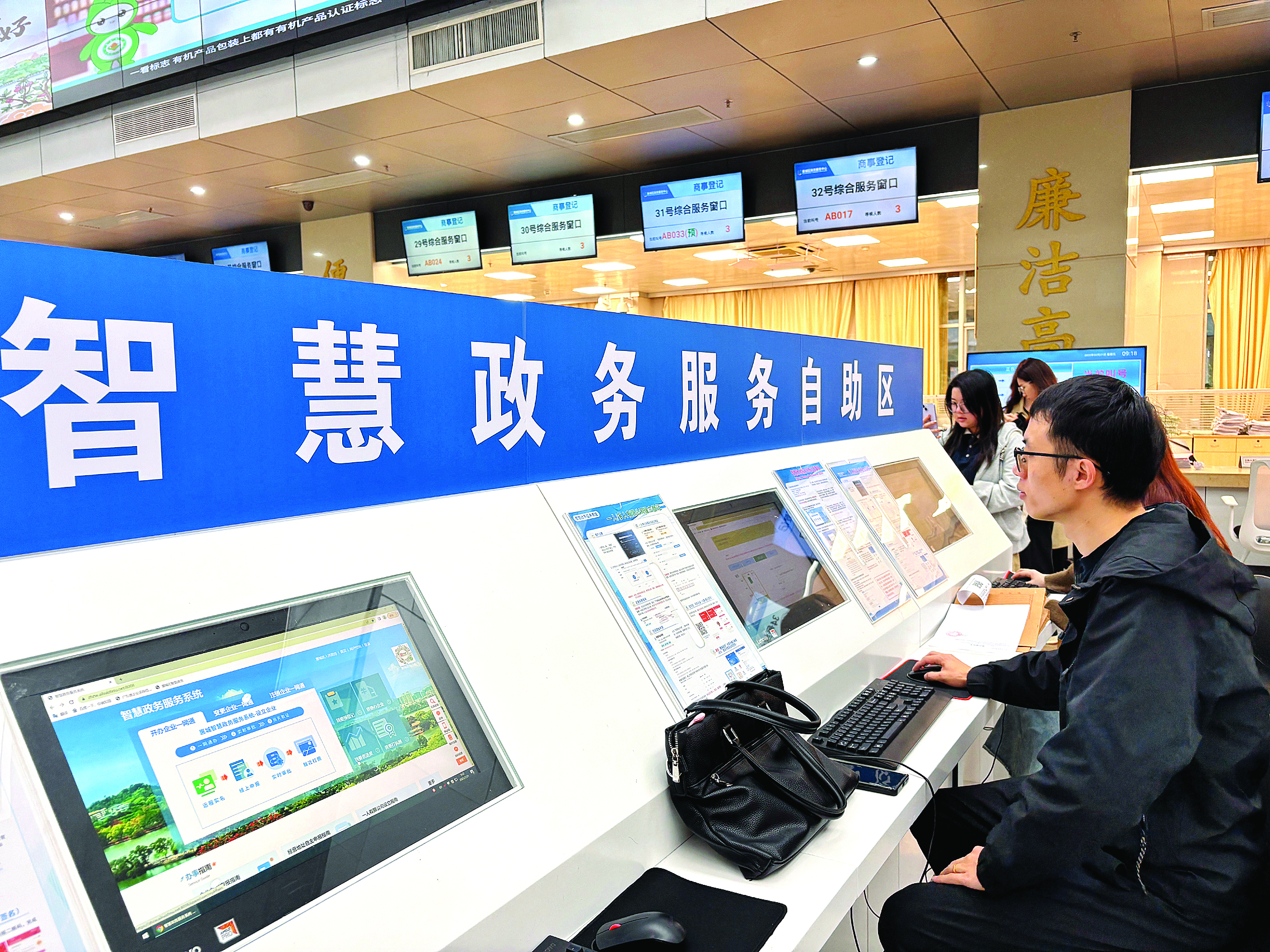 惠城區(qū)行政服務(wù)中心智慧政務(wù)服務(wù)自助區(qū)。 惠州東江圖片社供圖