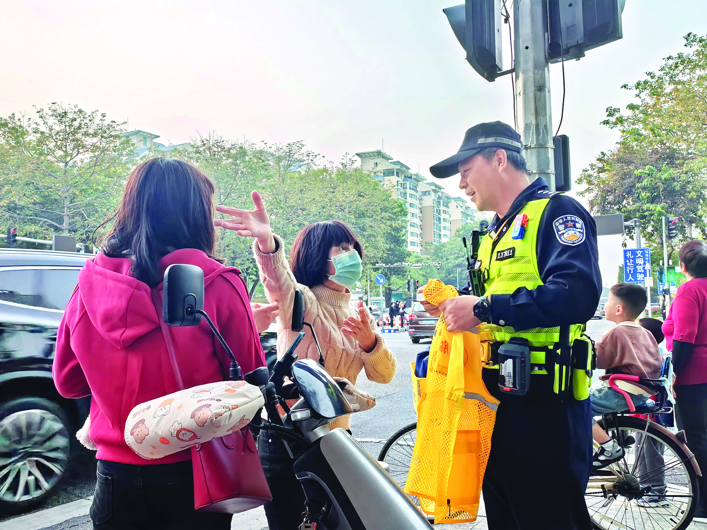 “現(xiàn)在請(qǐng)您穿上志愿服務(wù)馬甲,與我們一起參與交通勸導(dǎo)。”除了對(duì)電動(dòng)自行車交通違法行為進(jìn)行依法處罰外,惠州交警還同步開展了違法違規(guī)電動(dòng)自行車駕乘人員參與交通勸導(dǎo)教育和交通體驗(yàn)活動(dòng)。