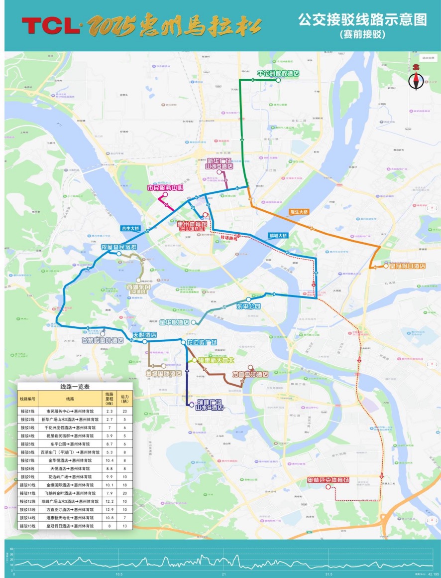 2025惠州馬拉松公交接駁線路示意圖(賽前接駁)。