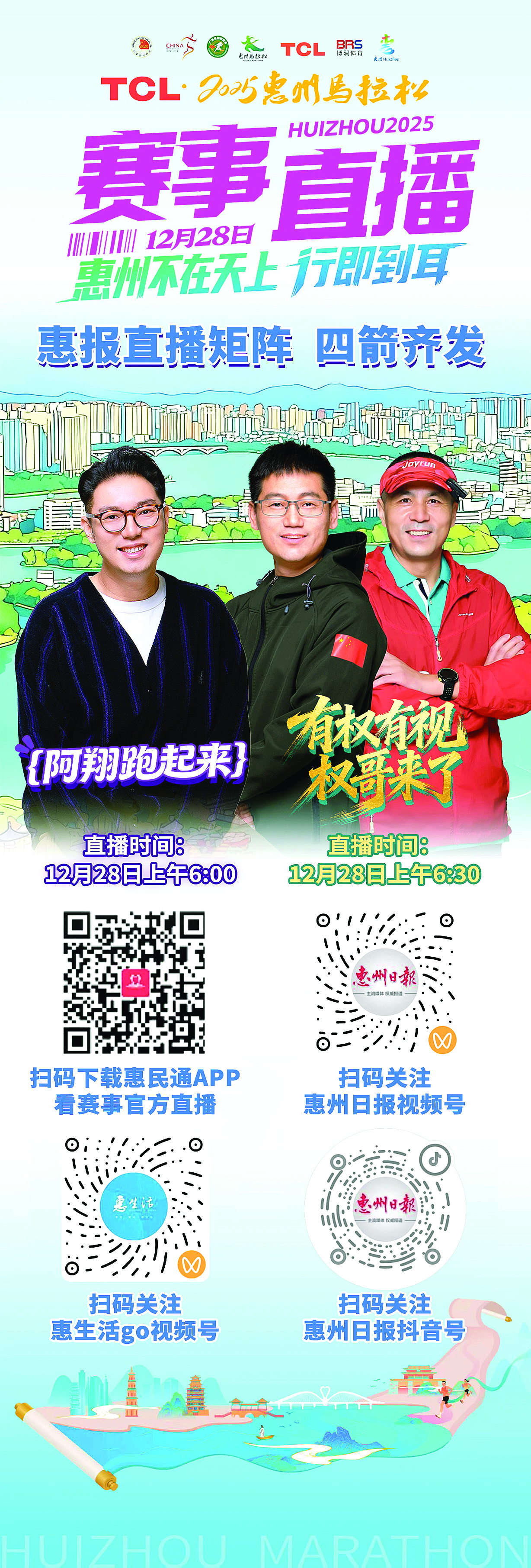 四路直播各具特色,覆蓋權(quán)威轉(zhuǎn)播、動(dòng)態(tài)直擊與深度體驗(yàn),形成全方位播報(bào)網(wǎng)絡(luò)。惠州日?qǐng)?bào)社通過融合傳播,旨在為廣大市民與馬拉松愛好者呈現(xiàn)一場(chǎng)生動(dòng)立體的體育盛宴。敬請(qǐng)鎖定惠報(bào)全平臺(tái),共同見證激情時(shí)刻!