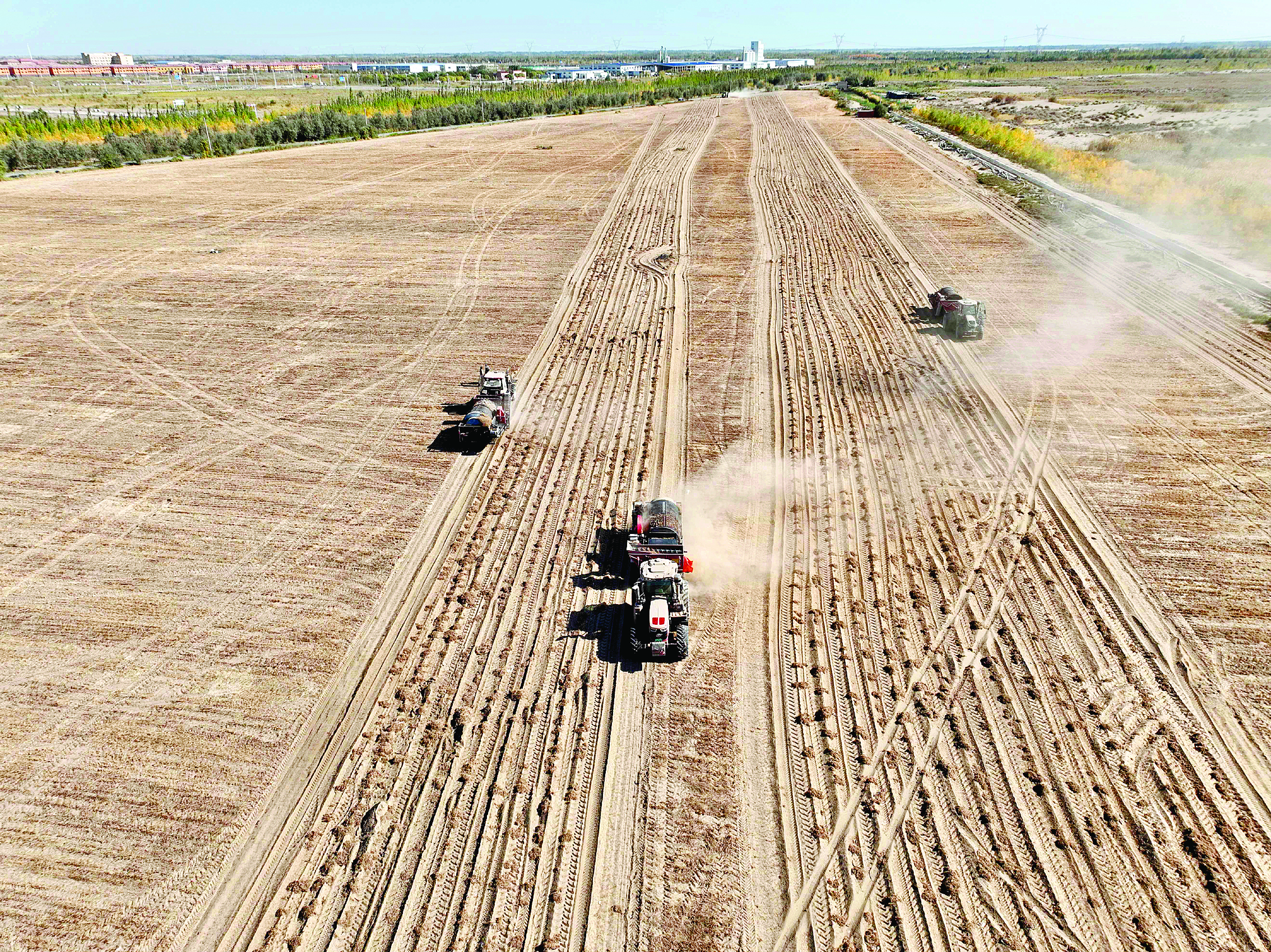 在沙漠里開墾土地大規(guī)模種植油莎豆