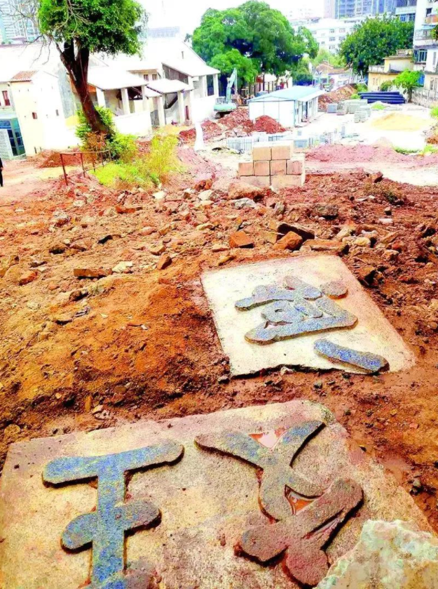 橋東白鶴峰王文成公祠石匾出土?xí)r的情況。惠州日?qǐng)?bào)記者侯縣軍 通訊員劉漢新 攝