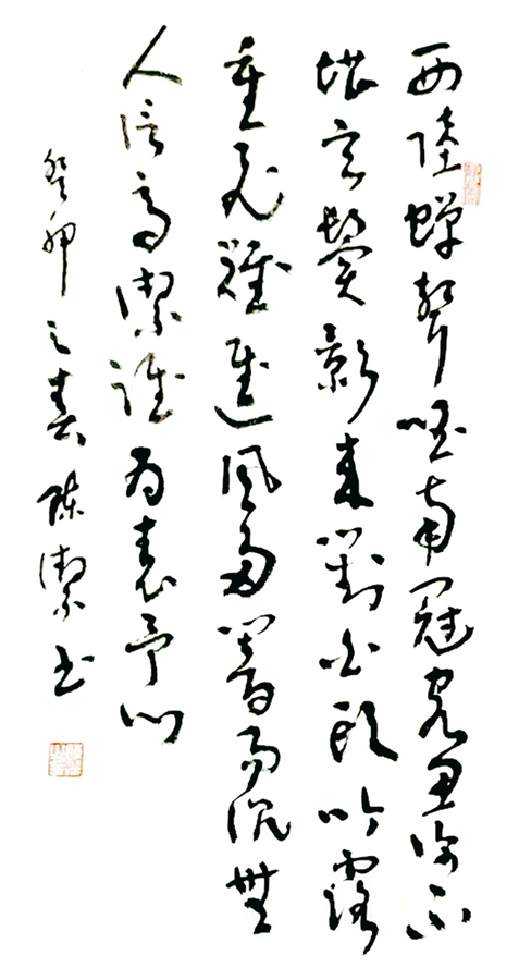 “書法既要有深厚的古文化功底,又要有胸襟、膽略、氣勢(shì)與激情,缺一不可,缺少任何一個(gè)都有可能使創(chuàng)作出的作品缺乏氣勢(shì)與力度,一幅好的作品更高的要求是把握氣韻,必須一氣呵成。”陳潔告訴記者,學(xué)習(xí)書法不能只學(xué)習(xí)書寫的形,更重要的是書法的“神”,得其神韻方為真。
