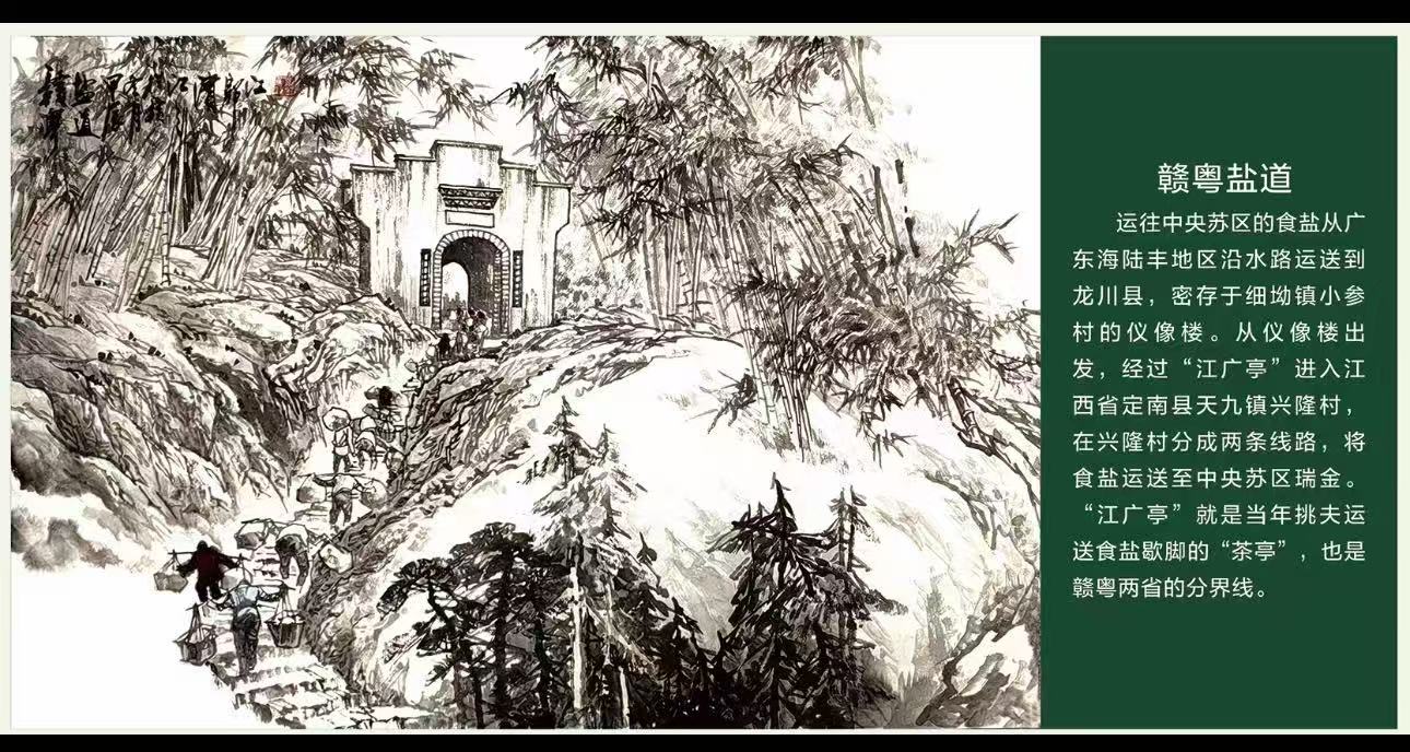 1931年,為打破敵人對中央蘇區(qū)的經(jīng)濟封鎖,地下黨組織開辟了一條贛粵食鹽運輸線,把惠州平海、稔山以及海陸豐汕尾、捷勝、遮浪、甲子、碣石一帶的海鹽,秘密運至江西瑞金、興國。食鹽運輸線途經(jīng)贛粵毗鄰的兩個小山村——定南天九的興隆村、龍川細坳的小參村。兩地群眾為運輸食鹽作出了巨大的犧牲。