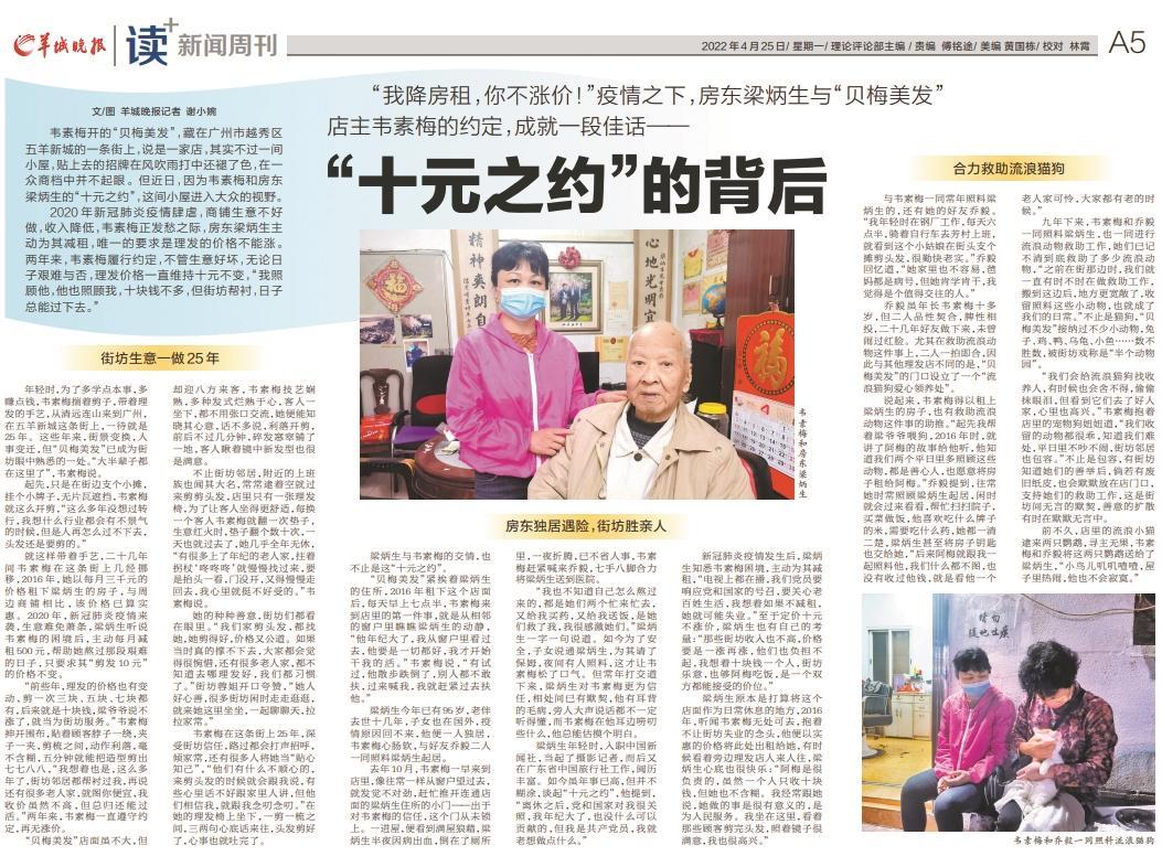 去年4月25日,羊城晚報曾刊發(fā)報道《“十元之約”的背后》,講述“中國好人”、誠實(shí)守信理發(fā)師韋素梅與她的房東、“廣州好人”梁炳生守望相助、情暖街坊的故事。近日,韋素梅告知記者,自己的房東梁炳生先生已于2月2日凌晨去世,享年96歲。斯人已逝,情誼、諾言依舊。