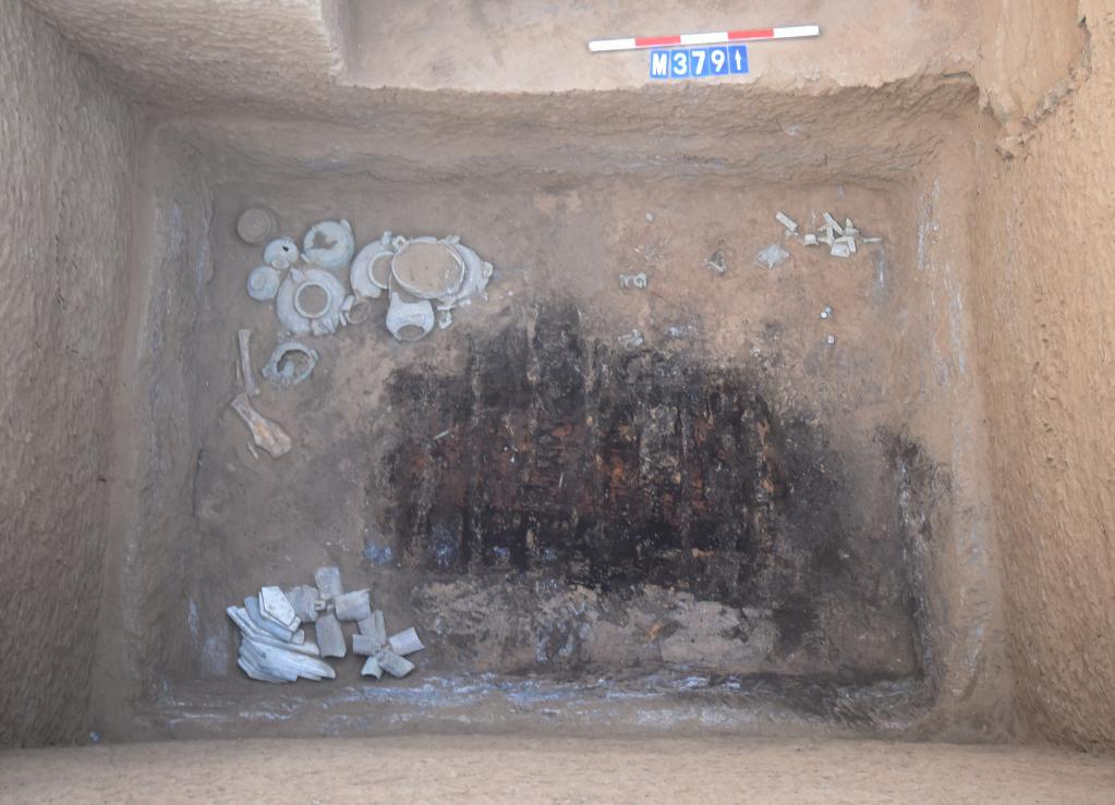 圖為河南三門峽陜州城墓地遺址四鼎貴族墓葬M379。(三門峽市文物考古研究所供圖)