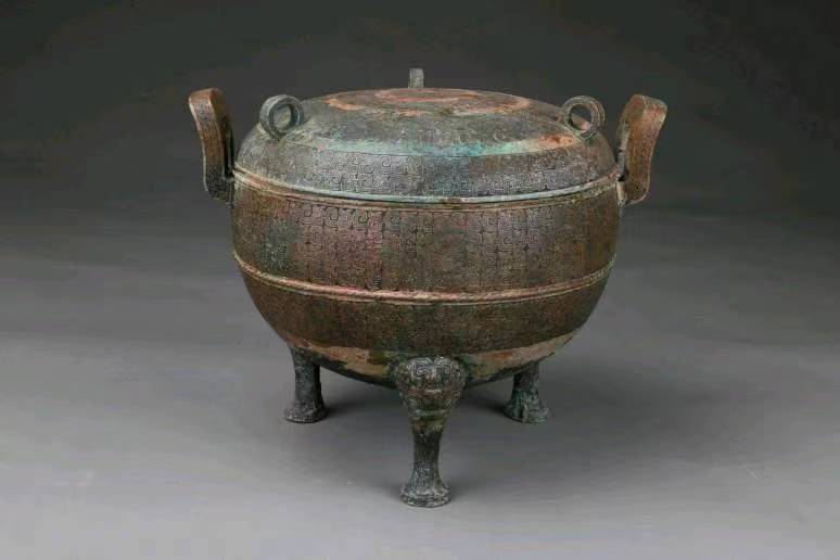 圖為河南三門峽陜州城墓地遺址出土的銅蓋鼎。(三門峽市文物考古研究所供圖)