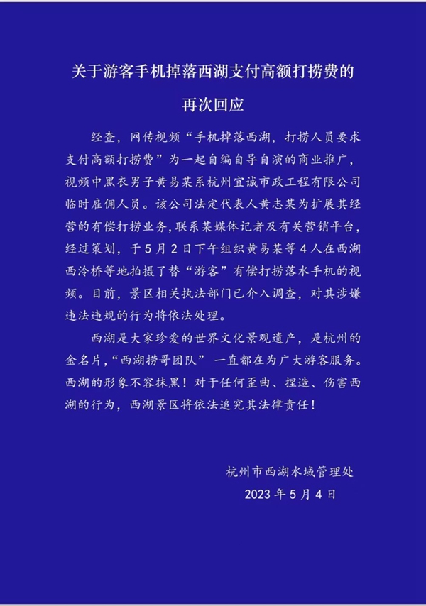 目前,西湖景區(qū)相關(guān)執(zhí)法部門已介入調(diào)查