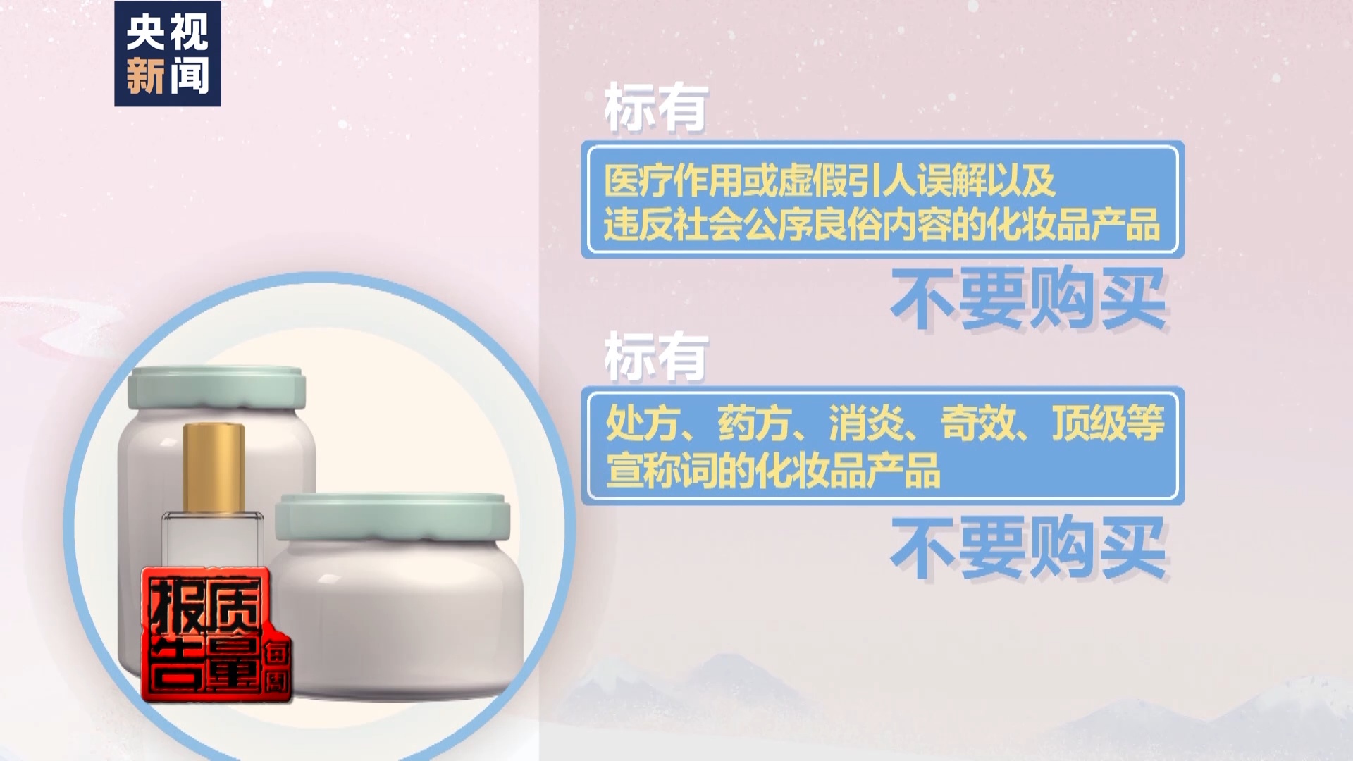 其中著重強調(diào):在選擇產(chǎn)品時應(yīng)注意標簽的宣稱內(nèi)容,標有醫(yī)療作用或虛假引人誤解以及違反社會公序良俗內(nèi)容的產(chǎn)品不要購買。這類宣稱詞一般為處方、藥方、消炎、奇效、頂級等,都是化妝品銷售時禁止宣稱的內(nèi)容。