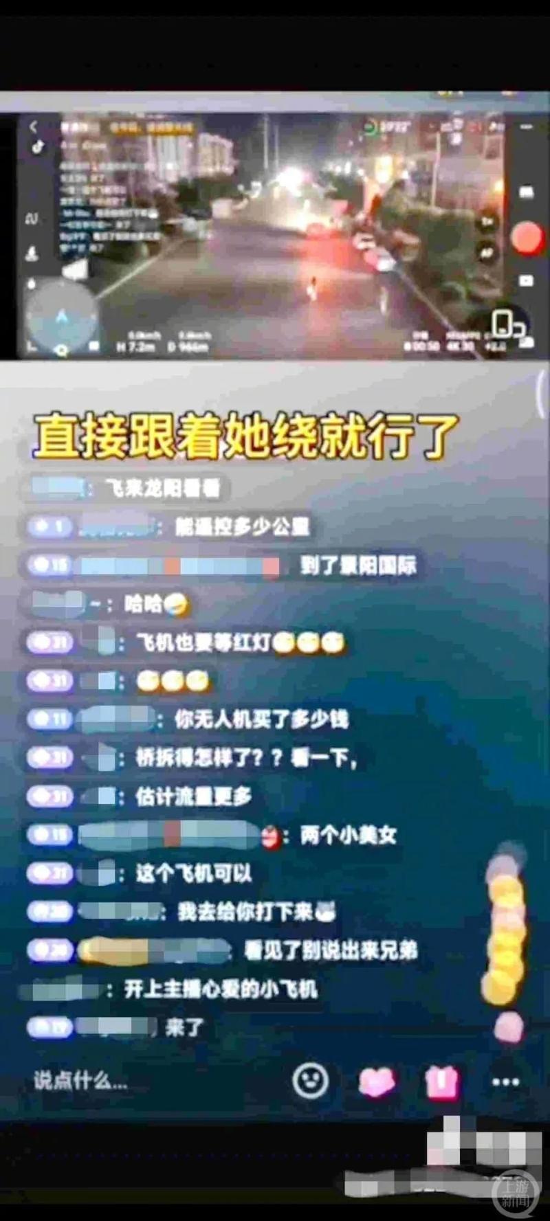 該直播視頻經網(wǎng)友錄屏轉發(fā),引起無數(shù)網(wǎng)友公憤,大家紛紛留言:“用無人機尾隨女孩子,好恐怖,希望公安機關嚴懲。”“要是回自己家的獨居女性,被別有用心之人發(fā)現(xiàn)住址,那真是太可怕了”“尾隨他人還開直播造謠,真是嚇人!”
