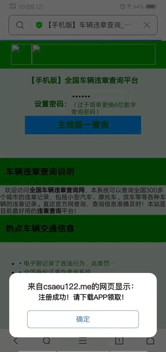 點擊鏈接后,彈出的是“山寨版”交通違法查詢平臺,如果按要求輸入姓名、身份證信息、手機號、設置密碼,就會泄露很多個人信息。騙子要的不止這些,下一步是引導受害人下載詐騙App,達到騙錢的目的。