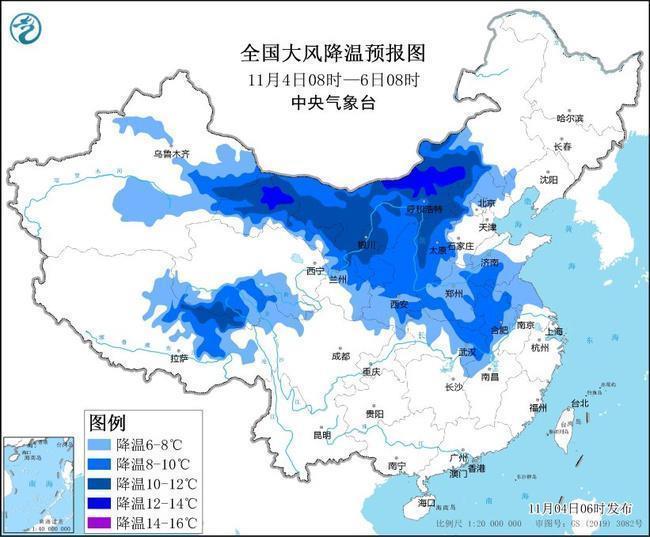 預(yù)計(jì),4日08時(shí)至6日08時(shí),新疆東部、內(nèi)蒙古中西部、西北地區(qū)中東部、華北、黃淮、江淮、江漢等地氣溫將下降6~10℃,甘肅北部、內(nèi)蒙古中部局地降溫可達(dá)12~14℃。