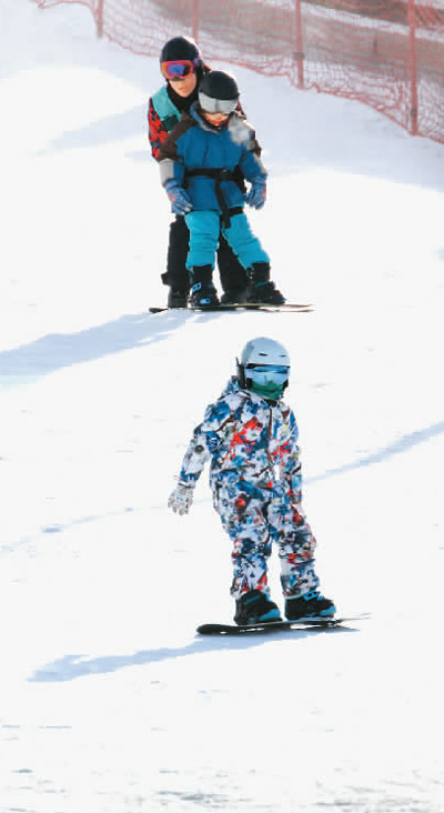 遼寧省沈陽(yáng)市丁香湖滑雪場(chǎng)內(nèi),游客體驗(yàn)冰雪運(yùn)動(dòng)樂(lè)趣。