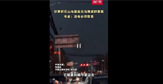 在地震發(fā)生前后,積石山縣當(dāng)?shù)鼐用癜l(fā)現(xiàn)大量烏鴉聚集在城區(qū)低空。相關(guān)視頻在網(wǎng)上傳播后,引起網(wǎng)友的關(guān)注和討論。有人說(shuō)烏鴉聚集是地震發(fā)生的征兆,有人則認(rèn)為這是正常現(xiàn)象,“晚上城里比山區(qū)暖和,烏鴉只是來(lái)避寒”。