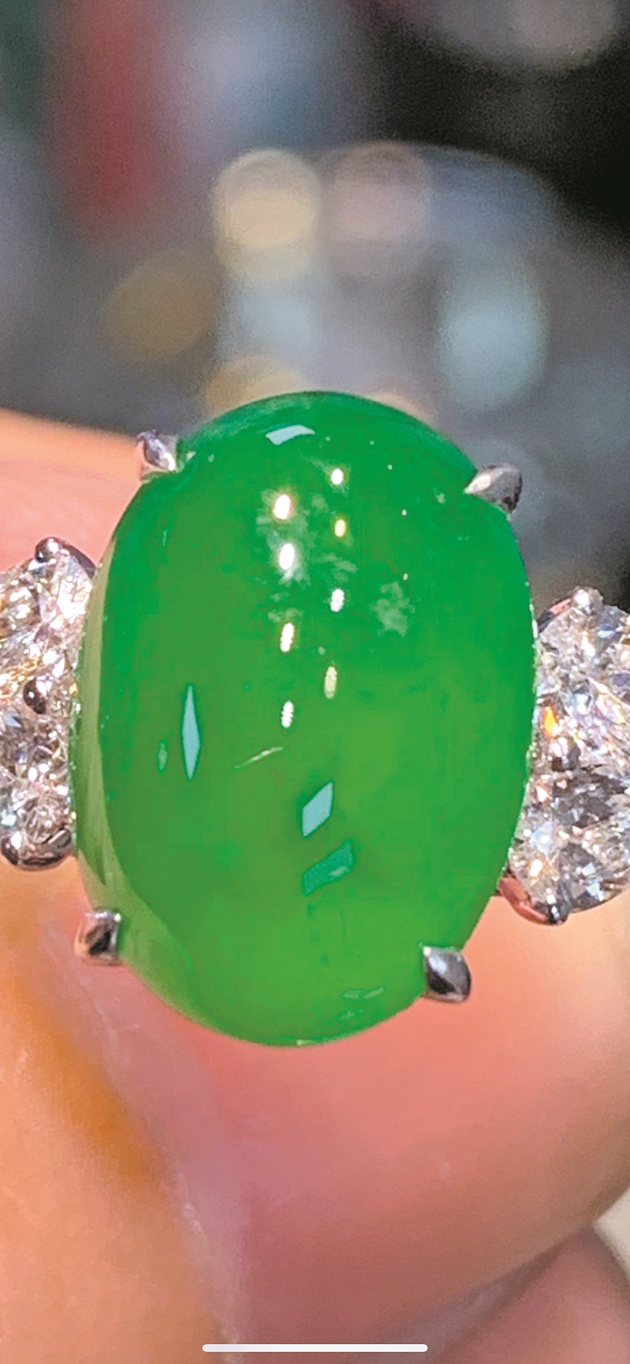 這枚戒指到底價(jià)值幾何?記者查閱發(fā)現(xiàn),一些自媒體視頻稱價(jià)值“1200萬”,也有見過該翡翠的其他人稱應(yīng)該值200萬元左右。