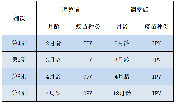 脊灰疫苗接種程序變化歷程如下: