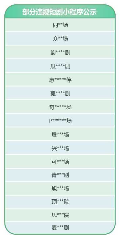 部分違規(guī)短劇小程序公示