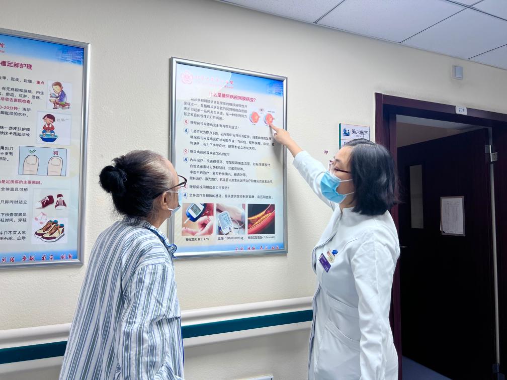 圖為北京大學(xué)第三醫(yī)院糖尿病專科護(hù)士為住院患者宣教如何預(yù)防糖尿病視網(wǎng)膜病變。新華社發(fā)
