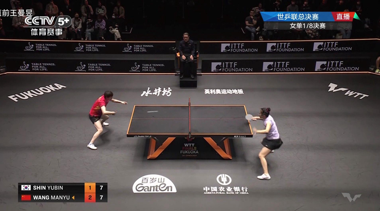 在剛剛結(jié)束的世界乒聯(lián)總決賽的一場(chǎng)女單1/8決賽中,王曼昱3-1戰(zhàn)勝韓國(guó)選手申裕斌,晉級(jí)八強(qiáng)。四局比分為:11-3,11-9,7-11,11-8。