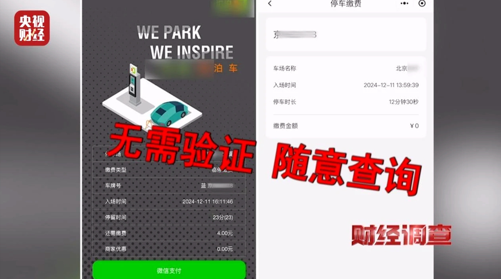 《財(cái)經(jīng)調(diào)查》對(duì)北京兩個(gè)采用了“智慧停車”系統(tǒng)的停車場(chǎng)進(jìn)行了技術(shù)檢測(cè)。駕駛員將車駛?cè)胪\噲?chǎng),遠(yuǎn)在幾公里外的專業(yè)技術(shù)人員,輸入車輛的車牌號(hào)后,無需身份驗(yàn)證,輕而易舉地就獲得了車輛所在停車場(chǎng)、車輛入場(chǎng)時(shí)間等敏感信息。