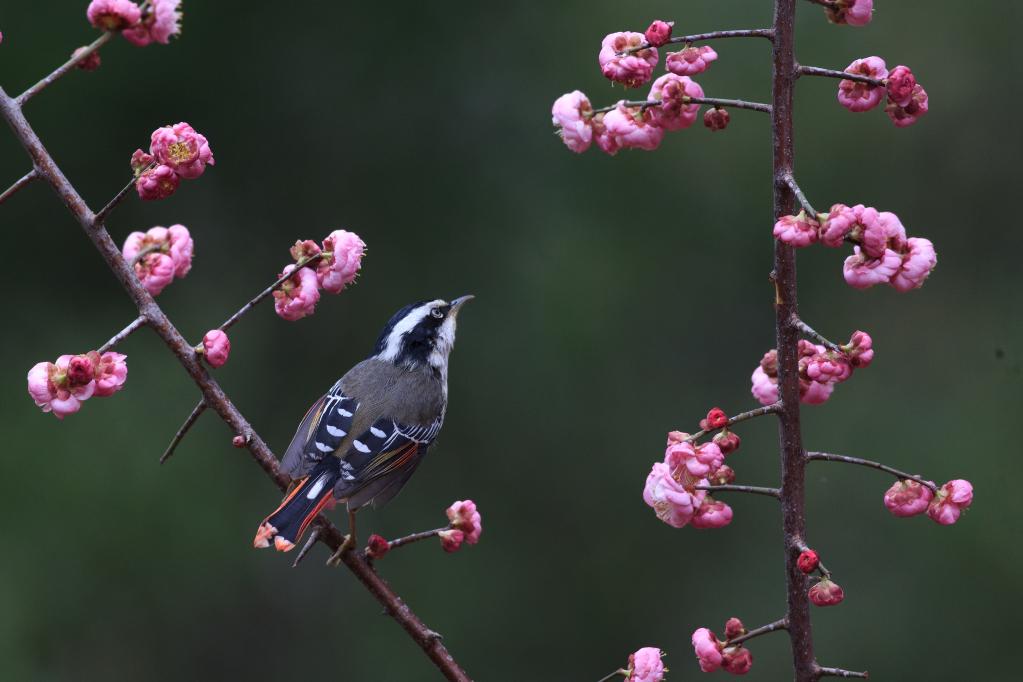 衡陽(yáng)市衡東縣花兒開(kāi)放,引來(lái)各種小鳥花間嬉戲。