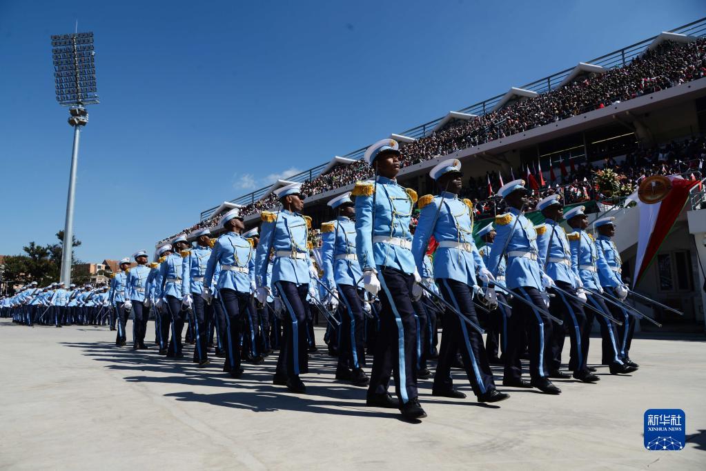 當(dāng)日,馬達(dá)加斯加舉行國慶日閱兵活動(dòng),慶祝獨(dú)立63周年。新華社發(fā)(西塔卡·拉喬納里松攝)