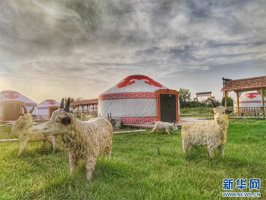 造型獨(dú)特的雕塑與蒙古包相互映襯,盡顯草原文化魅力。