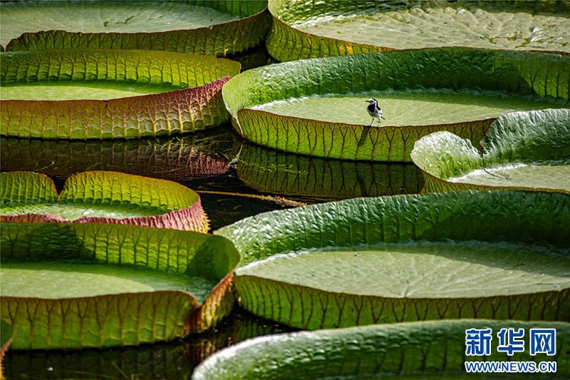 近日,廣州白云湖公園里的水生植物王蓮盛開,吸引大批市民游客前去觀賞。據悉,王蓮生長速度比較快,在水中快速向外擴展,其根系發(fā)達,有助于凈化水質。王蓮具有很強的浮力,可以承載一個成年人的重量,其中最大的葉片直徑有1.72米。