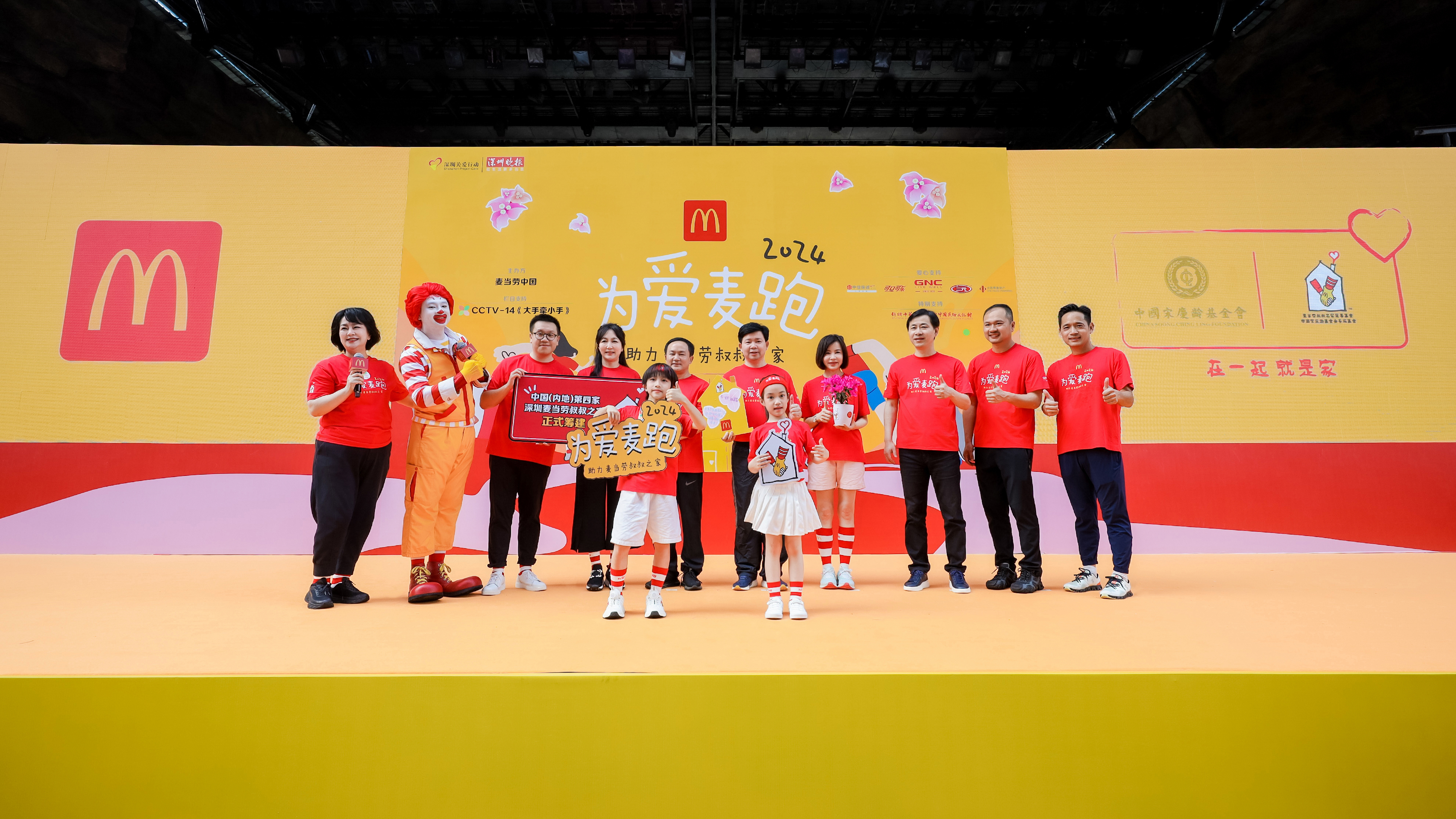 嘉賓手捧深圳市花三角梅,與兒童代表共同啟動(dòng)20224為愛麥跑。后排右起為:深圳麥當(dāng)勞總經(jīng)理陳影宏、麥當(dāng)勞中國(guó)南區(qū)副總裁張建洲、麥當(dāng)勞中國(guó)市場(chǎng)運(yùn)營(yíng)官吳輝、麥當(dāng)勞中國(guó)首席運(yùn)營(yíng)官林慧蓉、深圳市關(guān)愛辦主任、深圳報(bào)業(yè)集團(tuán)黨組書記、社長(zhǎng)丁時(shí)照、深圳市兒童醫(yī)院黨委書記羅新樂、麥當(dāng)勞中國(guó)首席影響官顧磊、麥當(dāng)勞中國(guó)公共關(guān)系副總裁金鑫、麥當(dāng)勞叔叔、中央廣播電視總臺(tái)少兒頻道主持人鞠萍姐姐