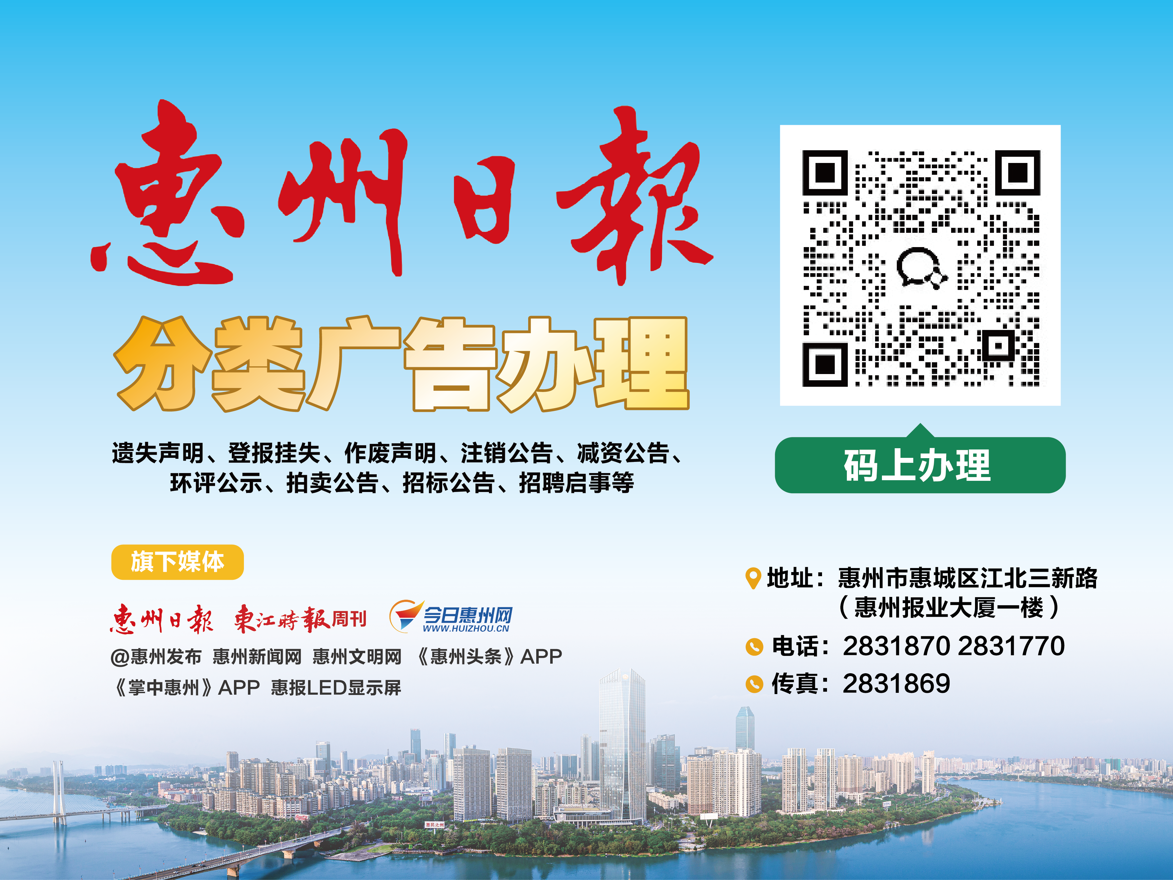 要辦理惠州日報(bào)分類廣告的小伙伴!