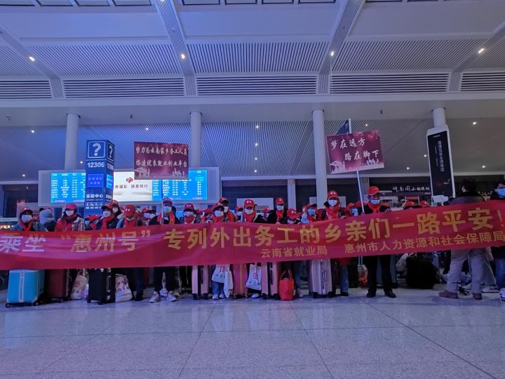 節(jié)后返崗?fù)殡S著春運(yùn)高峰,火車票、高鐵票“一票難求”的現(xiàn)象普遍。如果員工不能按時(shí)返崗,企業(yè)不僅難以安排生產(chǎn)計(jì)劃,甚至將影響訂單的準(zhǔn)時(shí)交付。為保障企業(yè)用工,做好返鄉(xiāng)員工返崗服務(wù),惠州市人社局提早謀劃,節(jié)前與云南省就業(yè)局聯(lián)系組織專列事宜。為確保首趟返崗專列順利發(fā)車,惠州市人社局吳嘉明局長(zhǎng)于1月28日(春節(jié)假期后上班第一天)帶隊(duì)先行趕赴云南昆明對(duì)接工作細(xì)節(jié)。初九早上7時(shí)許,惠州市人社局與云南省就業(yè)局在昆明會(huì)澤縣舉行了云南省2023年農(nóng)村勞動(dòng)力轉(zhuǎn)移就業(yè)集中輸出歡送儀式,簡(jiǎn)短而莊重的儀式結(jié)束后,專列正式啟程。