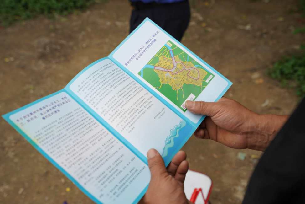 執(zhí)法人員向垂釣人員派發(fā)宣傳手冊(cè)引導(dǎo)文明垂釣。惠州日?qǐng)?bào)記者湯渝杭 攝