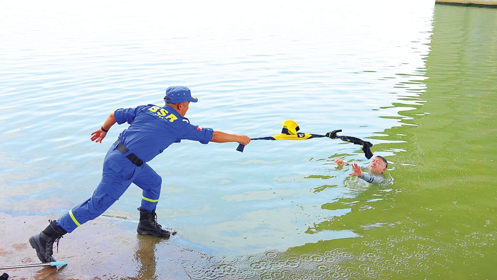 駱輝玲說,還可看看周圍有沒有樹枝、竹竿、繩子或者衣服等延長物,把延長物伸向或拋給溺水者。“拉人時要降低自身重心,趴在地面上慢慢把溺水者拉到岸邊。”