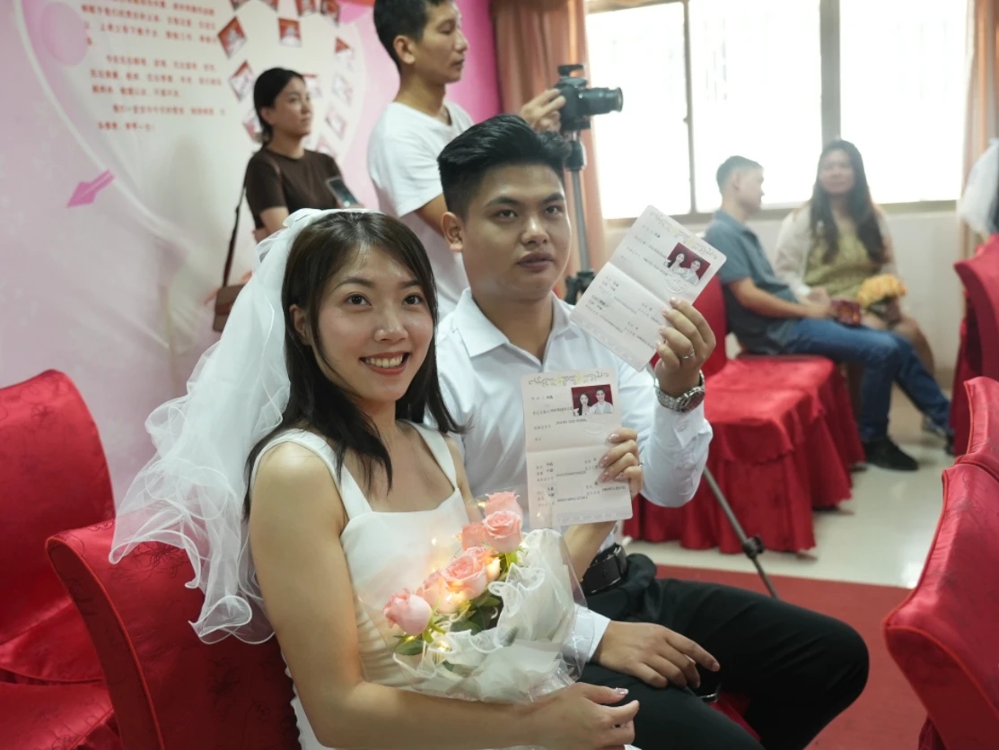 呂先生和劉小姐領到結婚證,曬出“小紅本”,開心地在鏡頭前做出心型的手勢。“我特意選了七夕這個美好的日子和女友前來領證。”新人呂先生和大家一起分享“甜蜜”。他和女友是研一時開始談戀愛的,研究生畢業(yè)后一起通過人才引進的方式來到惠州工作安家,“我們都是北方人,在這里相互依靠建起小家。”劉小姐滿眼幸福地告訴記者,她和呂先生經過六七年的戀愛,共同經歷了人生中的求學奮斗時光,最讓她感動的是疫情期間的一次經歷,“他當時身體很不舒服,我發(fā)熱了,他還半夜里背著我去醫(yī)院,他是一個很有責任感的人。”