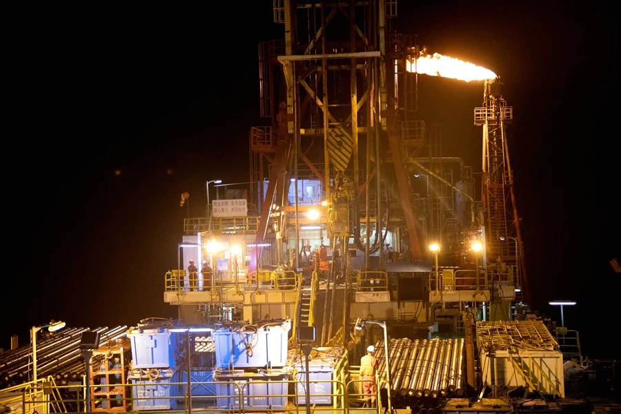 8月的中國南海,壯闊的海面愈顯深邃湛藍。南海東部西江油田,惠州25-8鉆采平臺調(diào)整井井架上的放空火炬熊熊燃燒,恰似一只跳躍飛舞的火鳳凰,而寶貴的“液體黃金”——石油正在工人的操作下,源源不斷地從海底抽取上來。日前,惠州日報社與中海油駐粵單位攜手開展聯(lián)學共建活動,記者赴距離惠州陸岸100海里的西江油田惠州25-8鉆采平臺一線采訪調(diào)研。