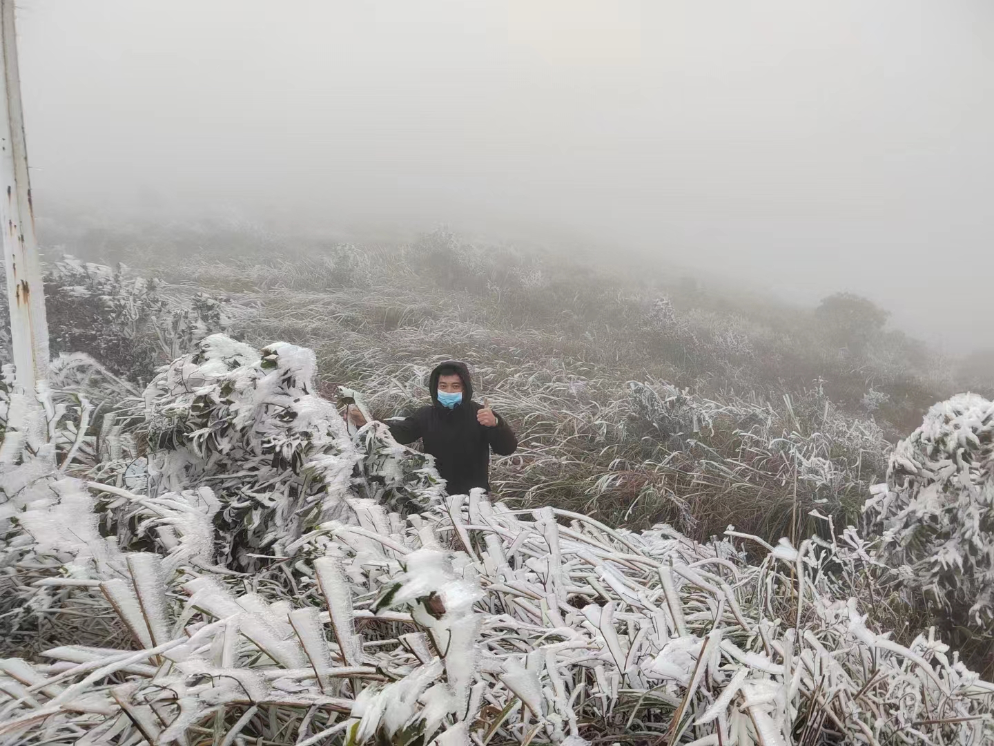 飛云頂?shù)臉?biāo)牌冰結(jié)得更厚。