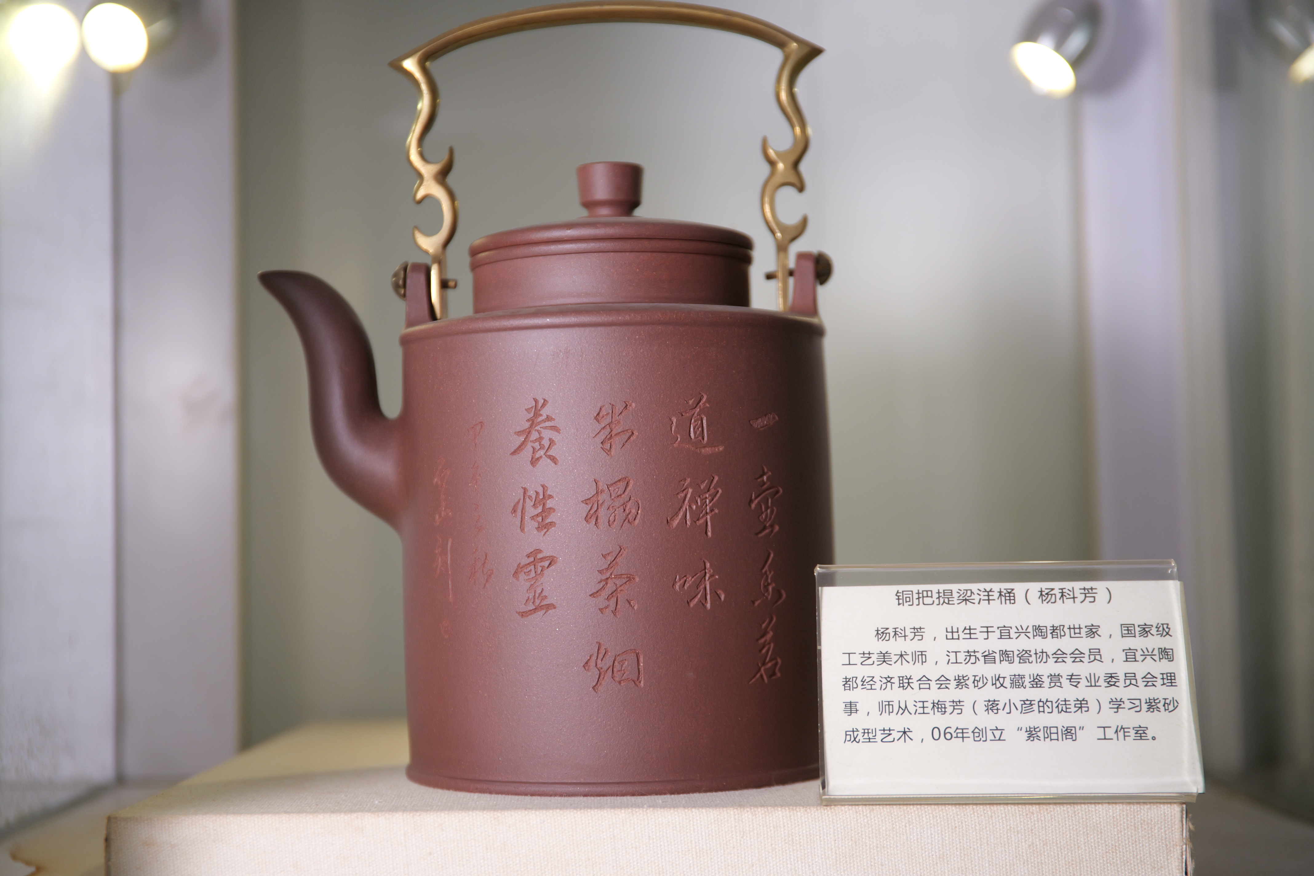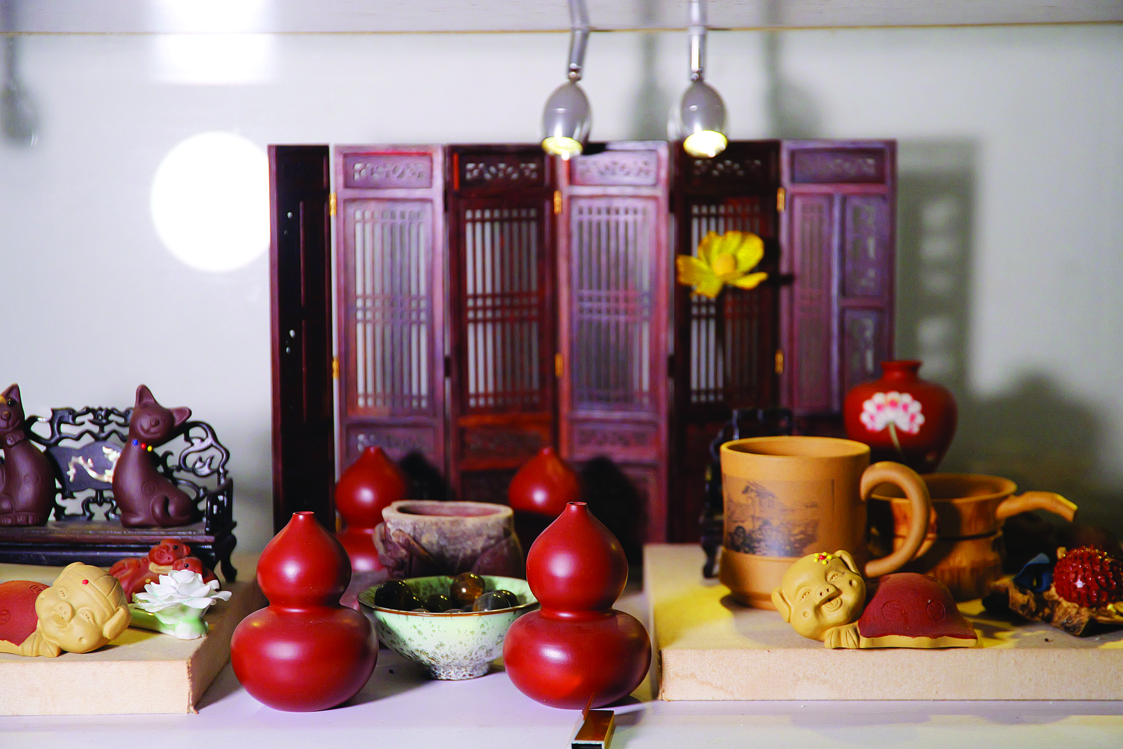 市民游客來到這里,猶如闖入一個藝術(shù)世界,可以把盞品茗,亦可以把玩紫砂壺,還可以摩挲其他諸如人物雕像、植物塑形等各式紫砂文創(chuàng)產(chǎn)品,在紫砂雕塑、金石、書法、繪畫、篆刻等藝術(shù)中感受中華優(yōu)秀傳統(tǒng)文化的熏陶和滋養(yǎng)。