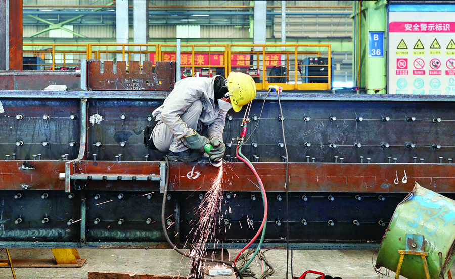 中建鋼構(gòu)廣東有限公司工人在進(jìn)行焊接作業(yè)。惠州日報記者鐘暢新 攝